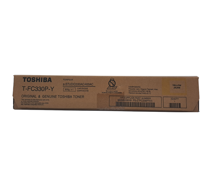 Toshiba T-FC330P-Y is a genuine yellow toner cartridge designed for exceptional color accuracy and consistent performance in Toshiba e-STUDIO 330AC and 400AC printers. Ideal for business environments, this high-yield toner supports demanding color printing needs with vivid, professional-grade results.