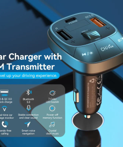 The Vention FFLB0 Car Charger with FM Transmitter delivers fast charging, clear audio streaming, and convenient hands-free calling, making it an essential car accessory.